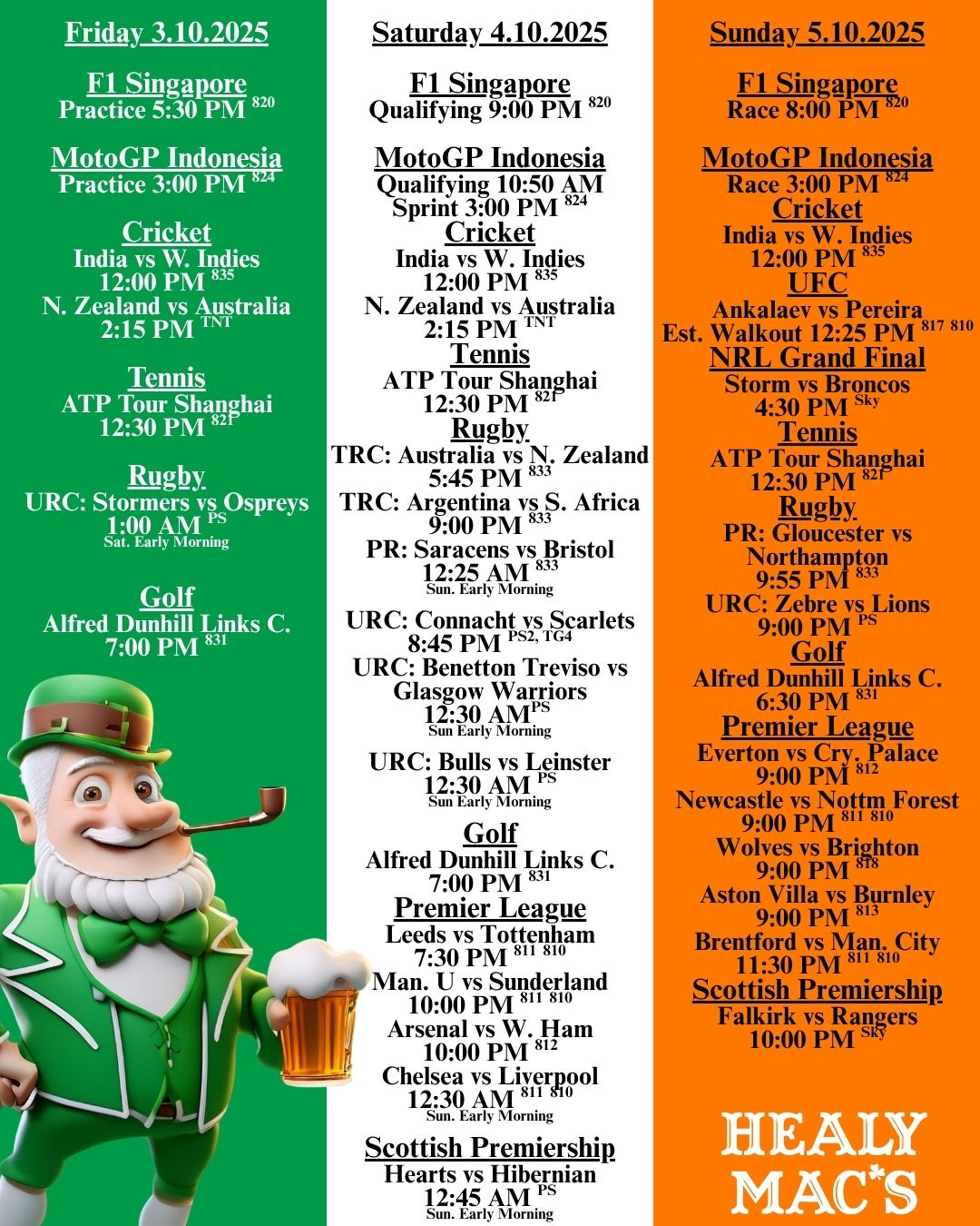 Weekly Sports Schedule