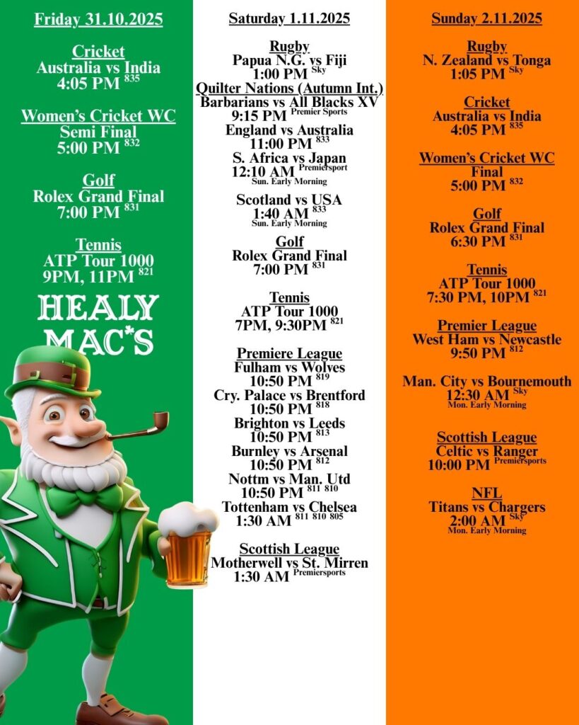 Catch all the action at our pub with live sports on big screens, great food, and refreshing drinks—your ultimate game day destination! Whether you’re cheering for your favorite team or just enjoying the thrill of the game, our lively atmosphere, mouth-watering menu, and perfectly poured pints make every match a memorable experience. Bring your friends, grab a seat, and immerse yourself in the excitement with us!